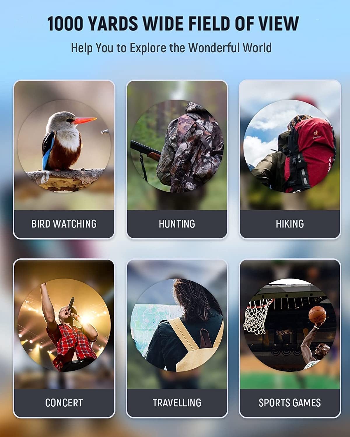 If you are interested in sports and outdoor activities: boating, hiking, bird watching, travel, wildlife, scenery, camping, hunting, concerts or anything that will inspire you to be in nature in your life. This 12X42 monocular telescope for smartphone will help you explore outdoors.