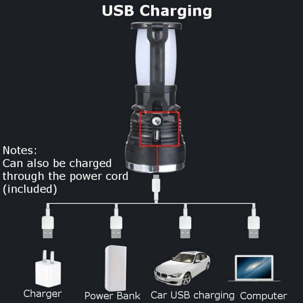 Portable multi-use camping lantern comes with 3 lighting modes. Features a waterproof exterior for added convenience and can be used as a power bank to recharge your phone.